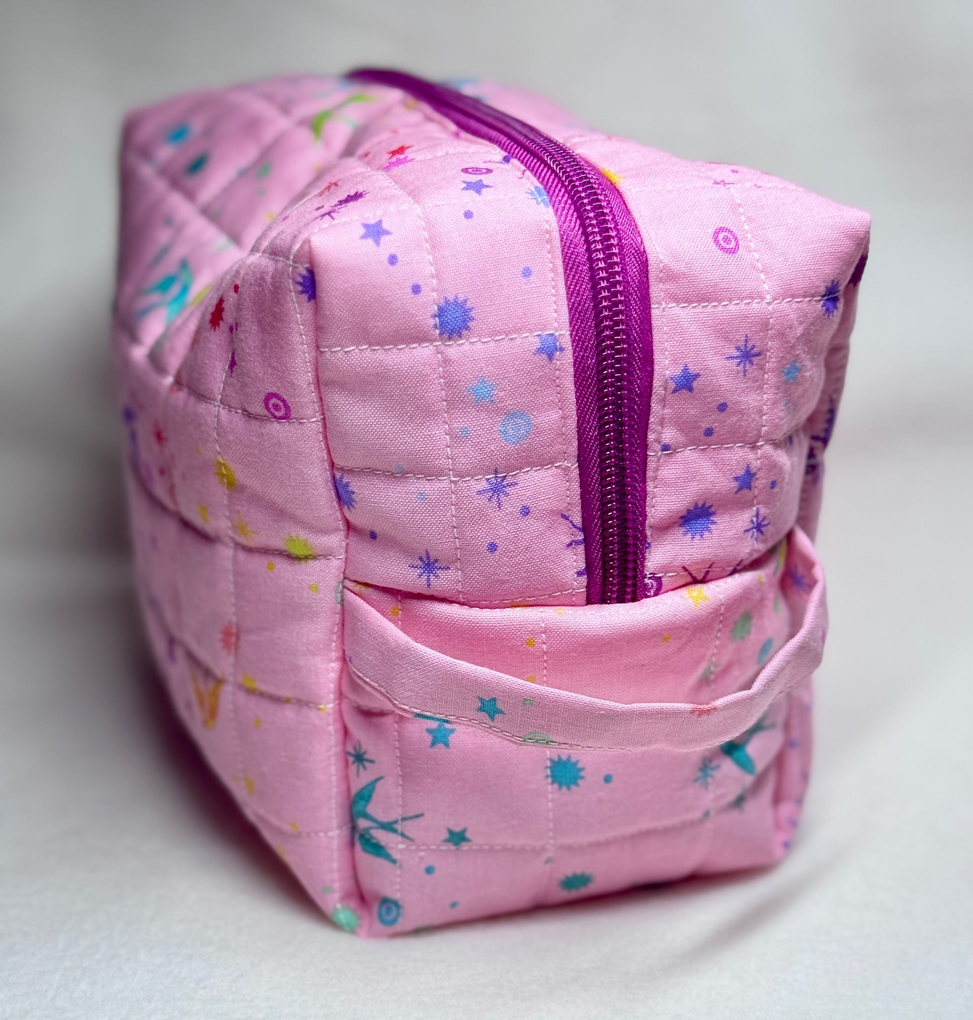 Handmade Quilted Makeup Bag: Cosmetic Organizer with Handle